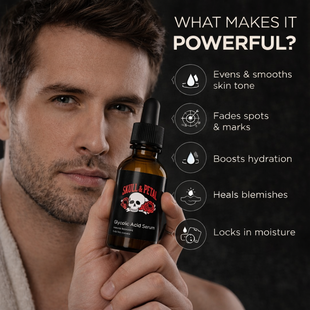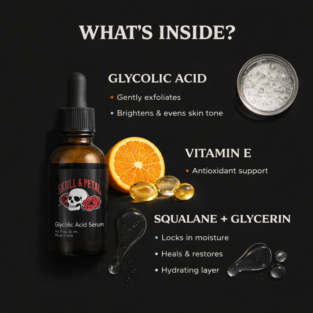 - Glycolic Acid Serum: Start fresh, strip away grit and oil.